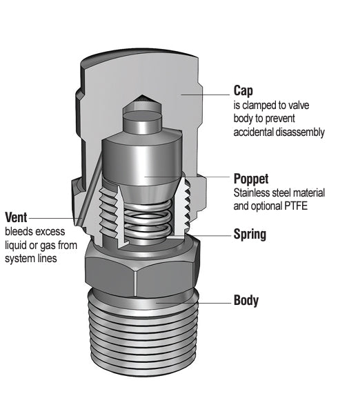 - Excess liquid or gas in system lines is bled through the vent hole.