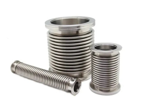 Bellows & Hoses – Stainless steel bellows, braided and unbraided hoses, KF/ISO/CF connections, custom lengths for vibration isolation and flexible routing.